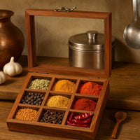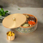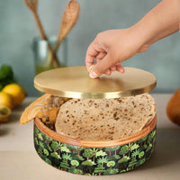 Teak Wood Roti Box with Stainless Steel Lid & Tong - Jharokha Green