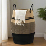 White & Brown Striped Cotton Laundry Basket - 18 inch x 15 inch x 11 inch