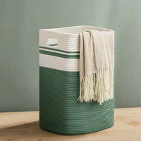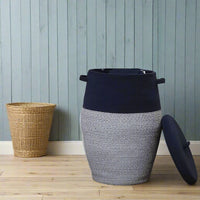 White, Blue Cotton Laundry Basket & Storage Organiser - 18 inch x 15 inch x 11 inch