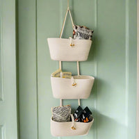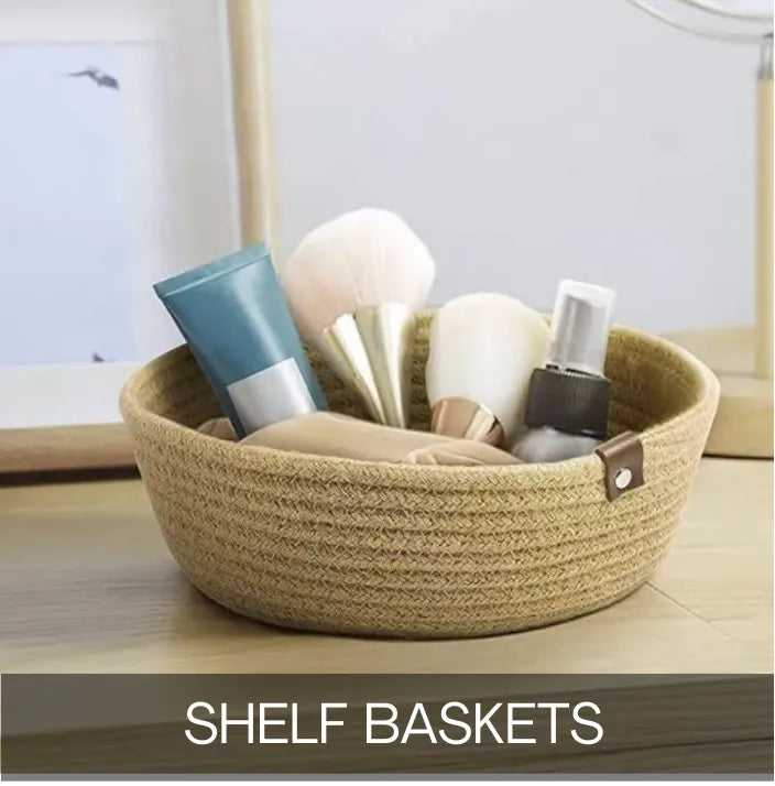White Cotton Storage Shelf Basket Set with Leather Handles - Multiple Sizes