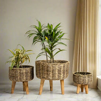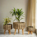 Rustic & Eco-Friendly Handwoven Beige Jute Planter Baskets - Set of 3