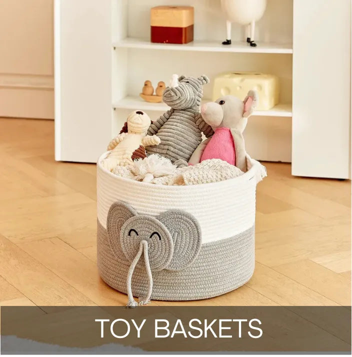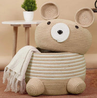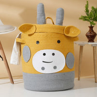 Yellow Cow Cotton Toy Storage Basket for Kids with Lid