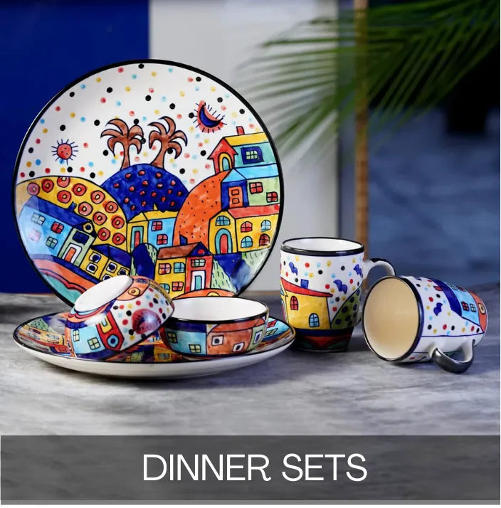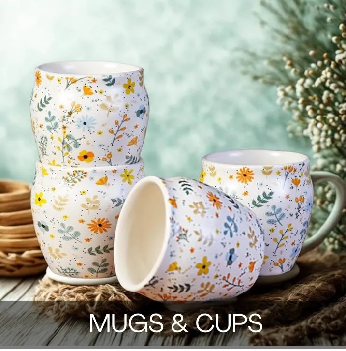 Hut Design Hand-Painted Ceramic Tea Cups/Milk Mugs - Set of 2