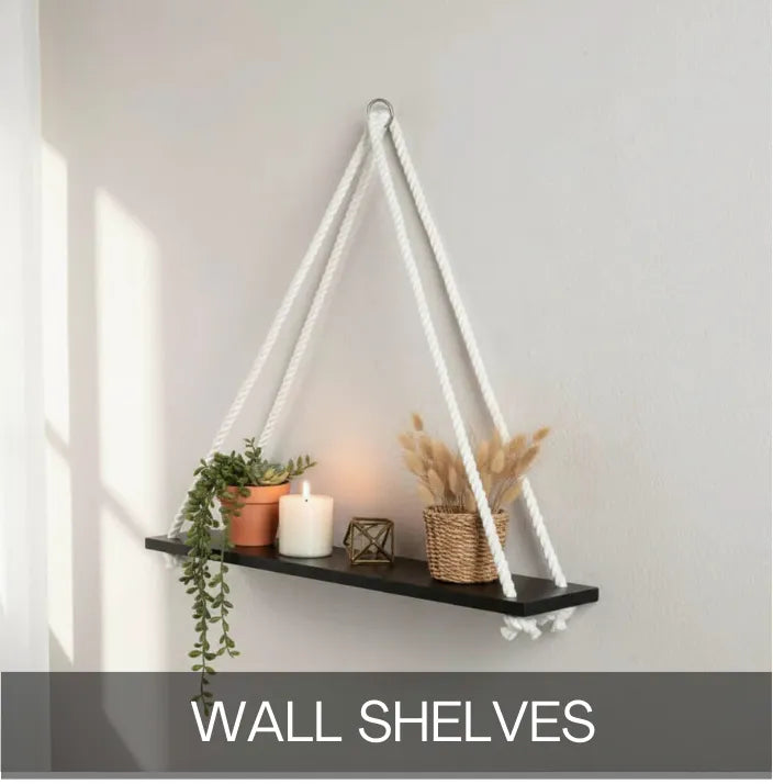 Hanging Wall Shelf with Adjustable Rope - Decorative Home Decor