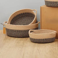 Beige & Black Cotton Storage Basket with Lid - Small, Medium & Large