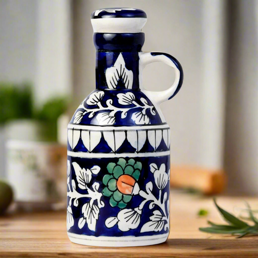 Blue Floral Hand-painted Ceramic Oil Dispenser – 500 ml