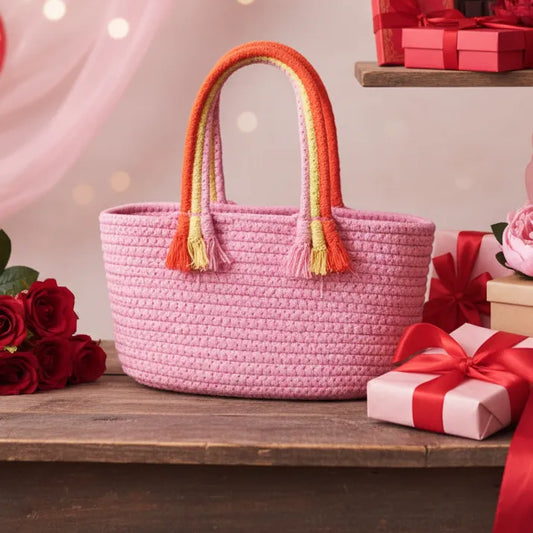Cotton Rope Storage Basket - Multiuse Organizer - Pink