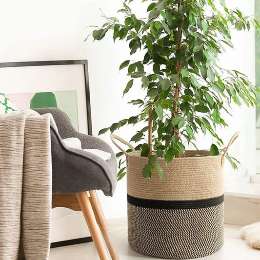 Beige & Black Handmade Cotton Planter & Storage Basket - Multiple Sizes