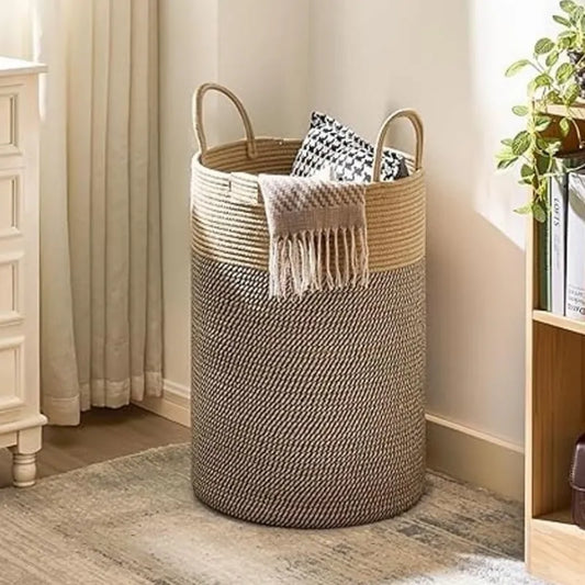 Beige & Black Cotton Planter, Laundry Hamper & Storage Basket - Multiple Sizes