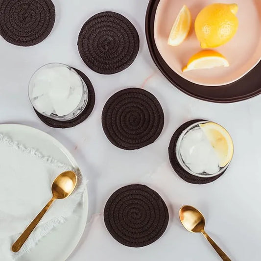 Black Vintage Cotton Handmade Coasters for Coffee table