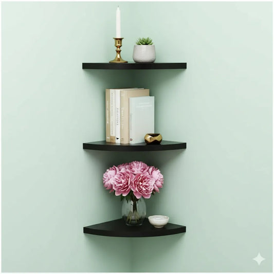 Premium Glossy Black Corner Wall Shelves
