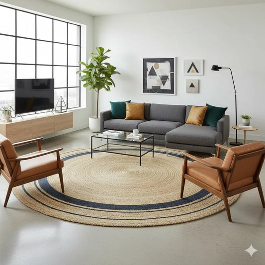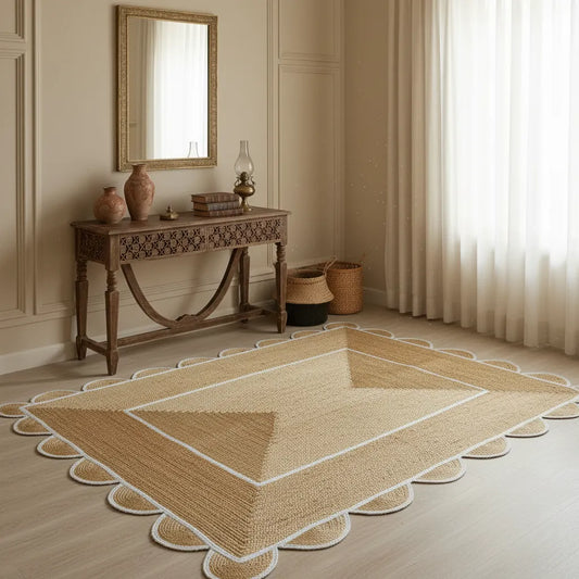 Scalloped Jute Rug - Handwoven Natural Decor