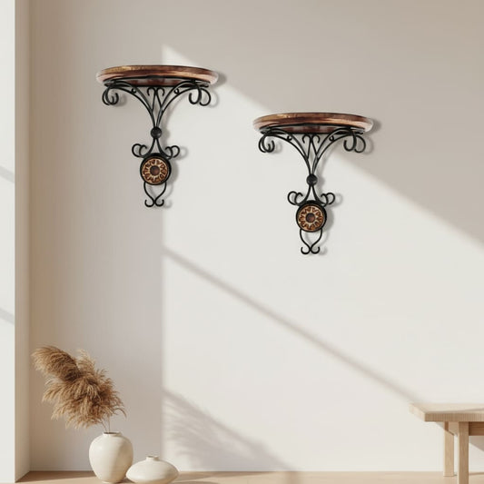 Solid Mango Wood Wall Shelf with Iron Brackets - Set of 2