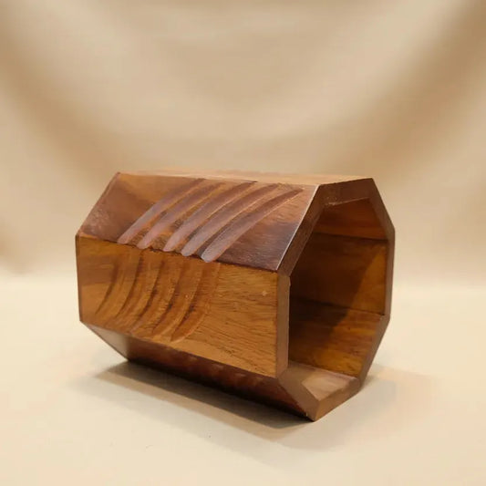 Hexagonal Sheesham Wood Pen Stand & Cutlery Holder