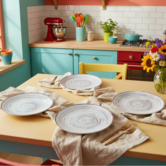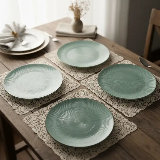 Hand-Painted Green Swirl Ceramic Dinner Plates