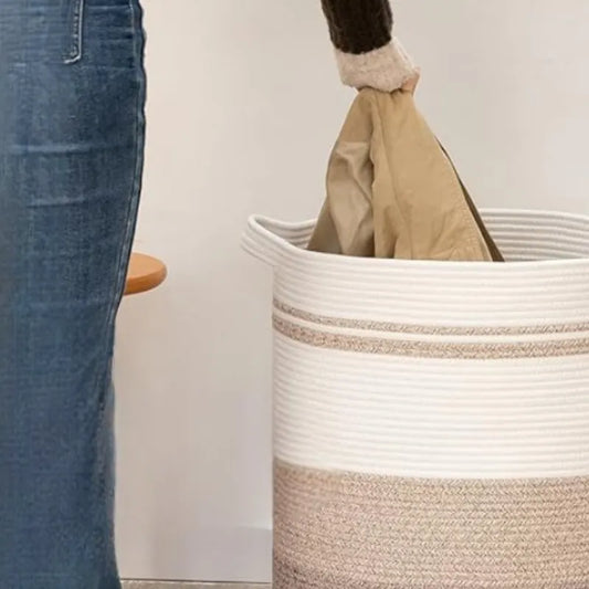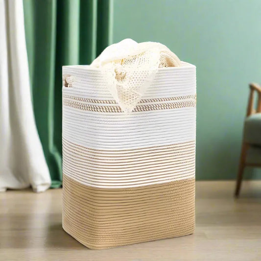 White, Beige & Brown Cotton Laundry Basket & Storage Organiser - Medium, Large