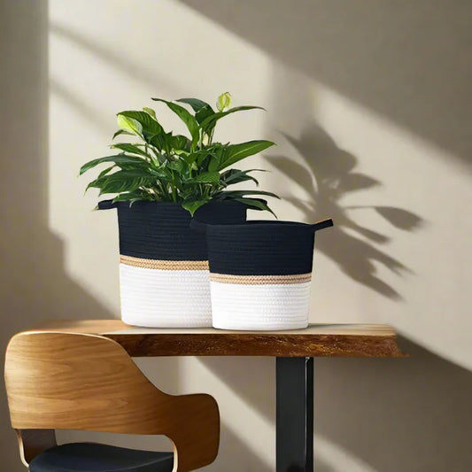 White & Black Handwoven Cotton Planter & Storage Baskets - Multiple Sizes