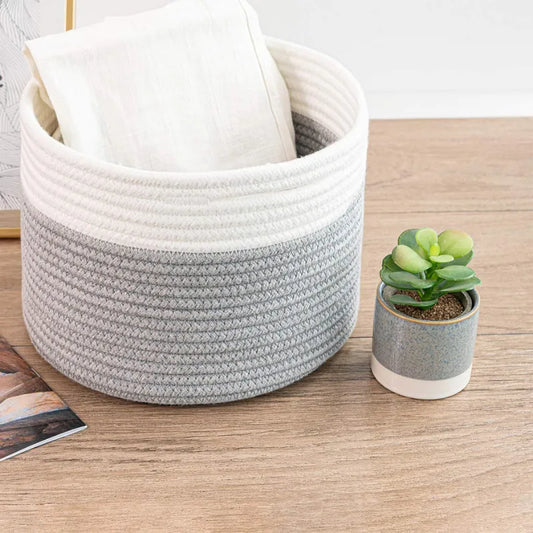 White & Grey Cotton Planter & Storage Basket - Multiple Sizes