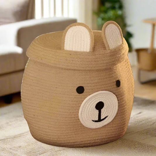 Eco-Bear Multi-Purpose Cotton Basket with Lid - 11 inch x 11 inch x 7 inch