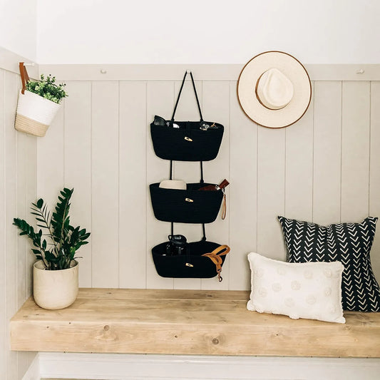 All-Purpose 3-Tier Cotton Wall Hanging Baskets - Black