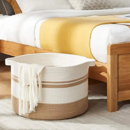 White & Beige Contemporary Cotton Basket - 16 inch x 16 inch x 12 inch