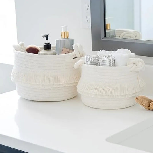 White Cotton Planters & Storage Organiser Baskets - Multiple Sizes