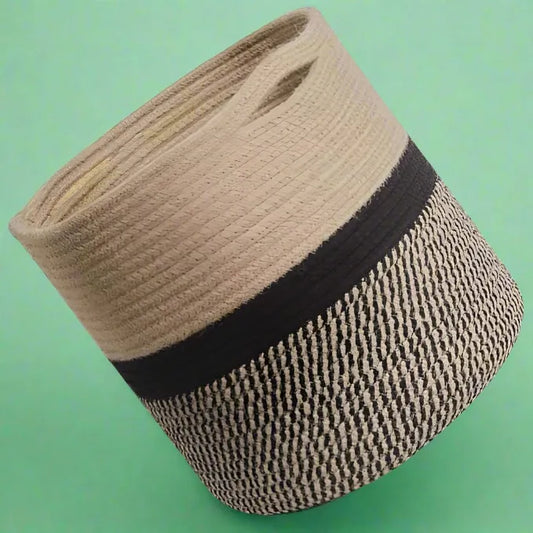 Rustic Charm Beige & Black Cotton Planter & Organiser - Multiple Sizes