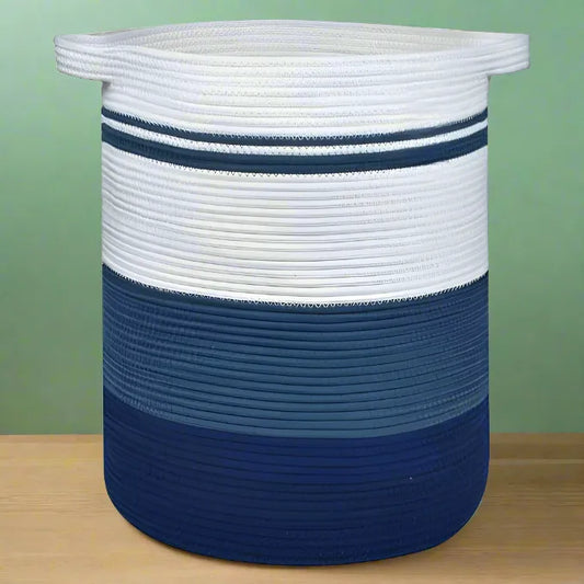 White, Blue Cotton Laundry Basket & Storage Organiser with Handles - Medium, Large