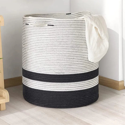 Black & White Cotton Laundry Basket & Storage Organizer - Medium, Large