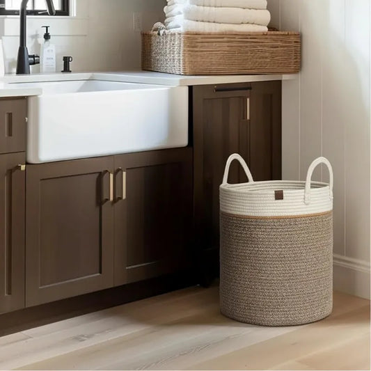 White, Beige & Brown Cotton Laundry Basket & Storage Organiser - Medium, Large