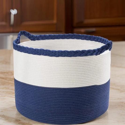 White & Blue Cotton Storage Basket with Handles - Medium, Large