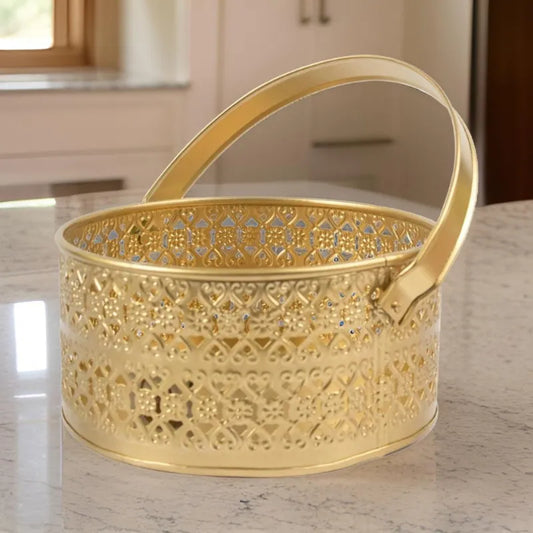 Golden Round Traditional Pooja Basket & Fruit Basket