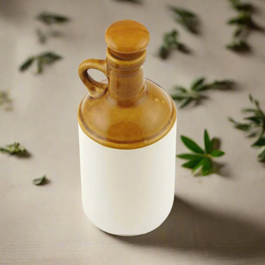 Handglazed White & Brown Ceramic Food & Microwave Safe Oil Dispenser - 1000 ml