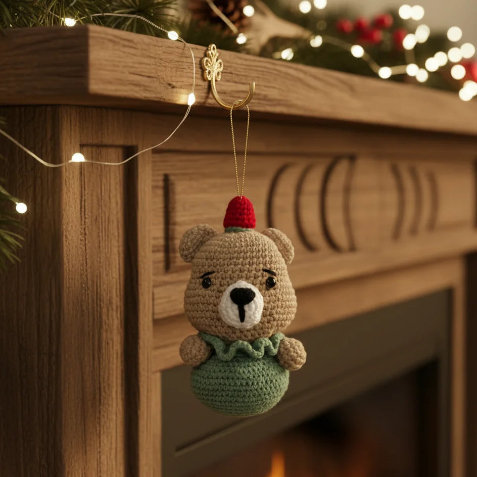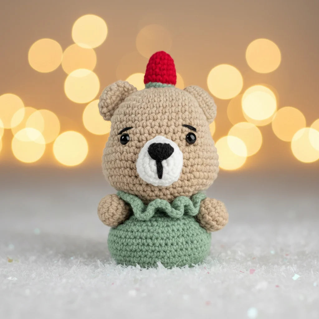 Festive Crochet Bear Soft Toy & Decor Ornament