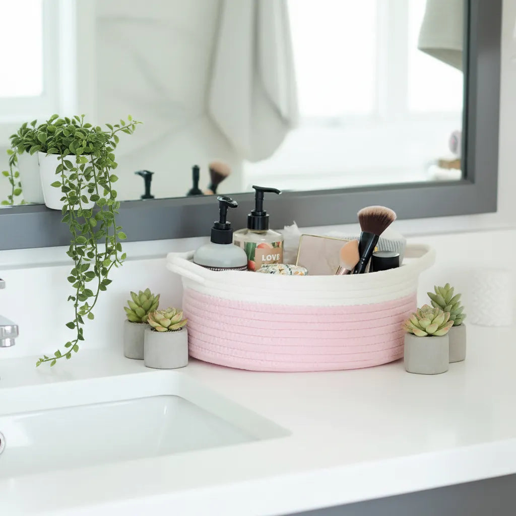 White & Pink Cotton Rope Organiser - Multiple Sizes
